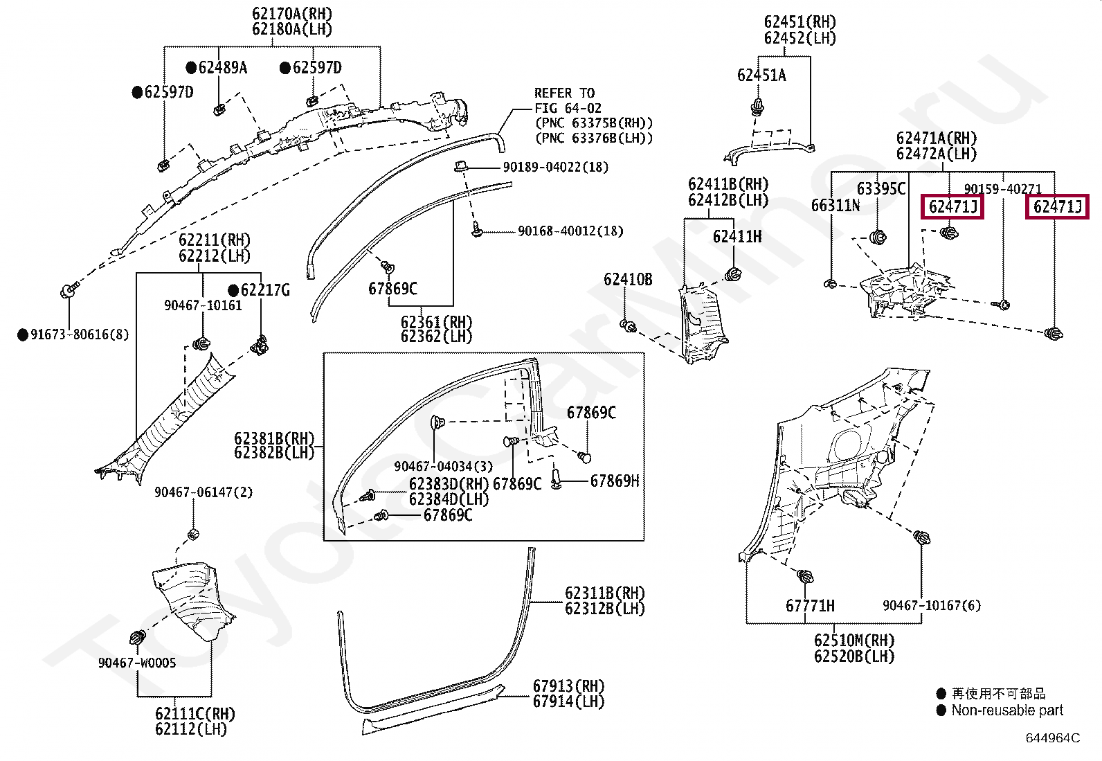 67771-28150, RETAINER, DOOR TRIM