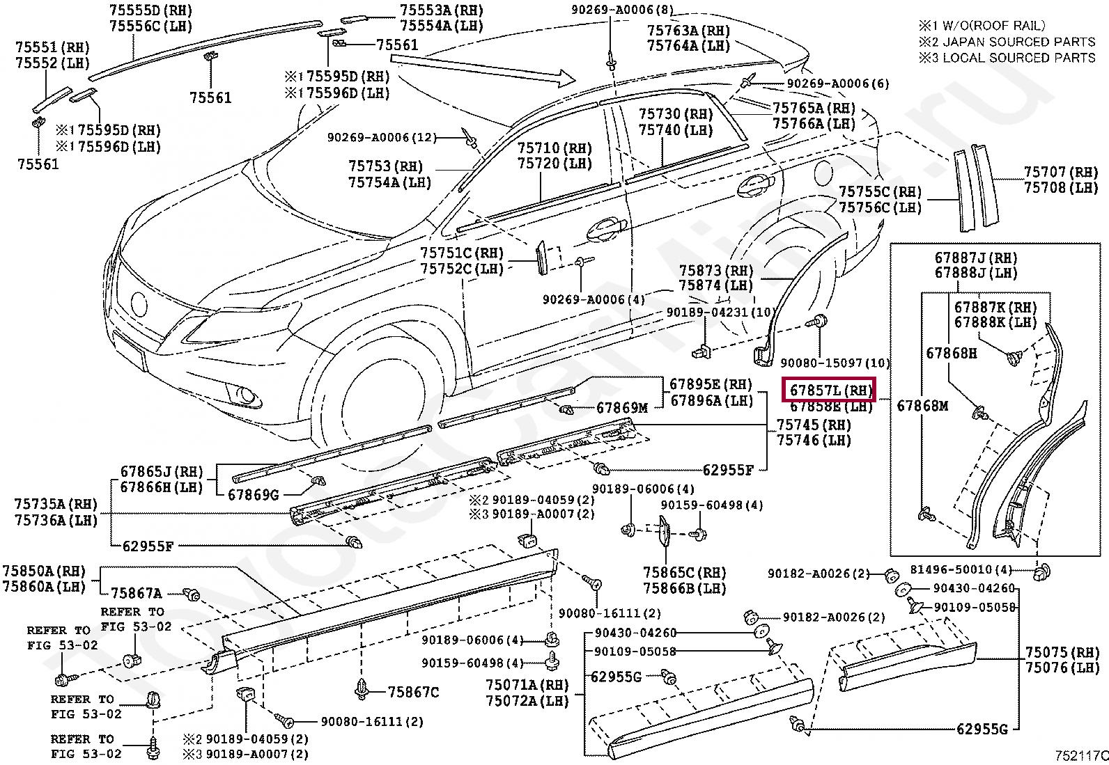 67857-0E010, PROTECTOR, REAR DOOR PANEL, RH