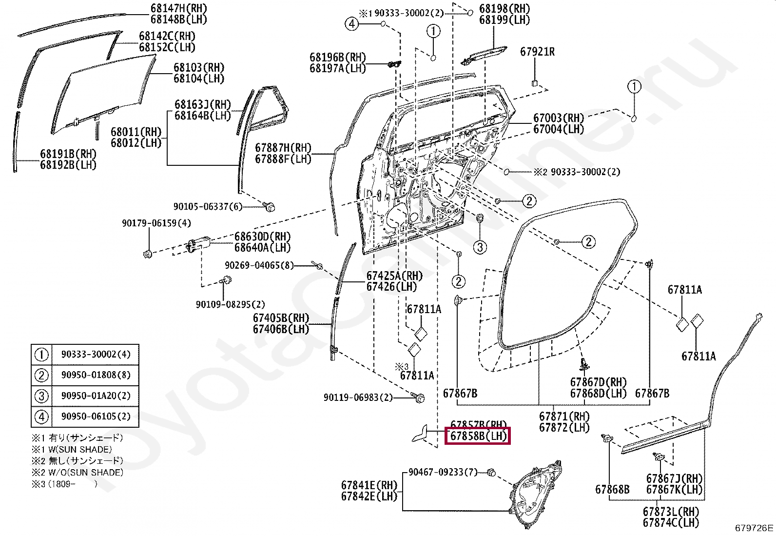 67858-50010, PROTECTOR, REAR DOOR PANEL, LH