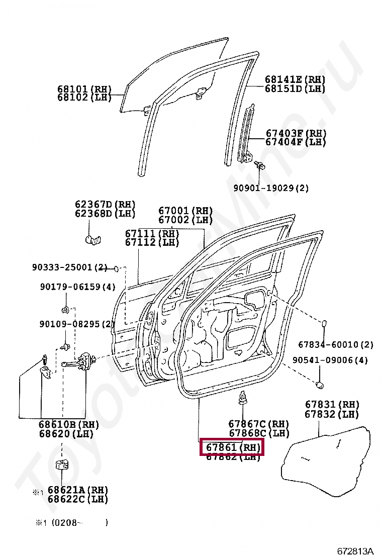 67861-60101, Уплотнитель передней правой двери