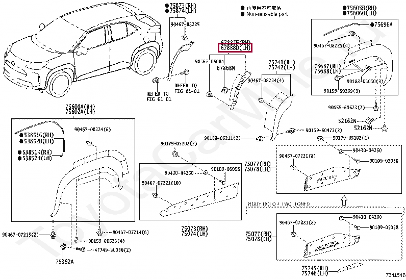 67888-52050, WEATHERSTRIP, REAR DOOR, NO.2 LH
