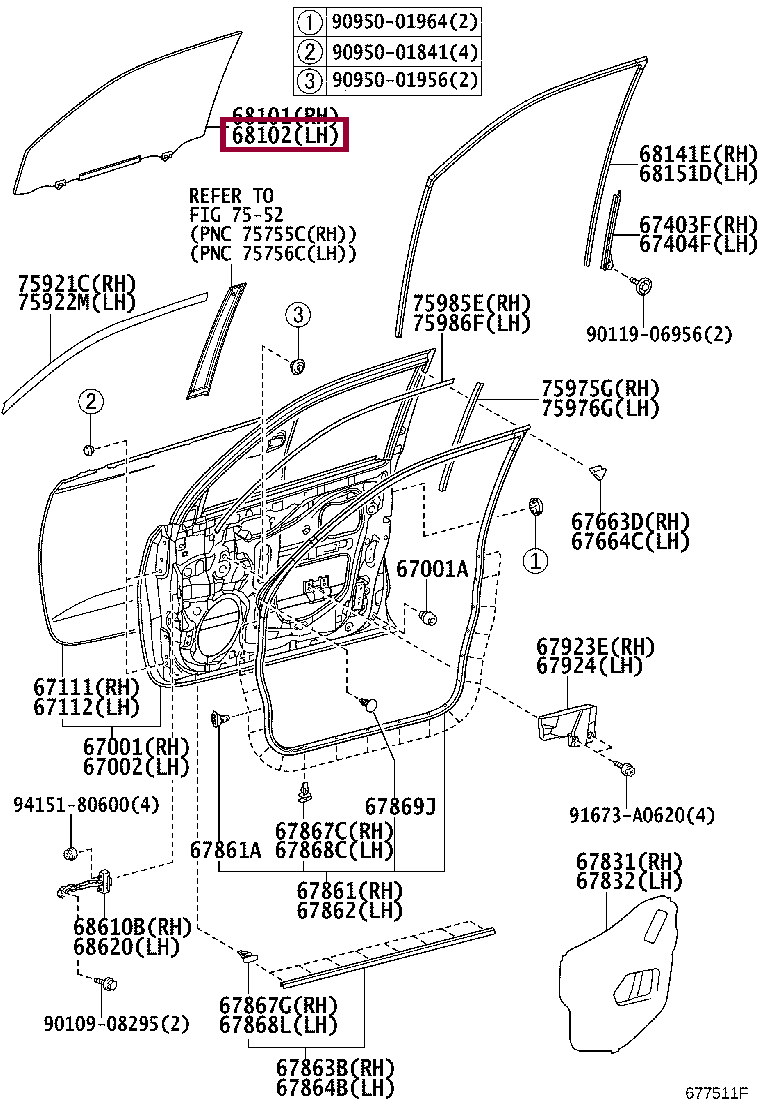 68102-60610, стекло передней двери левое