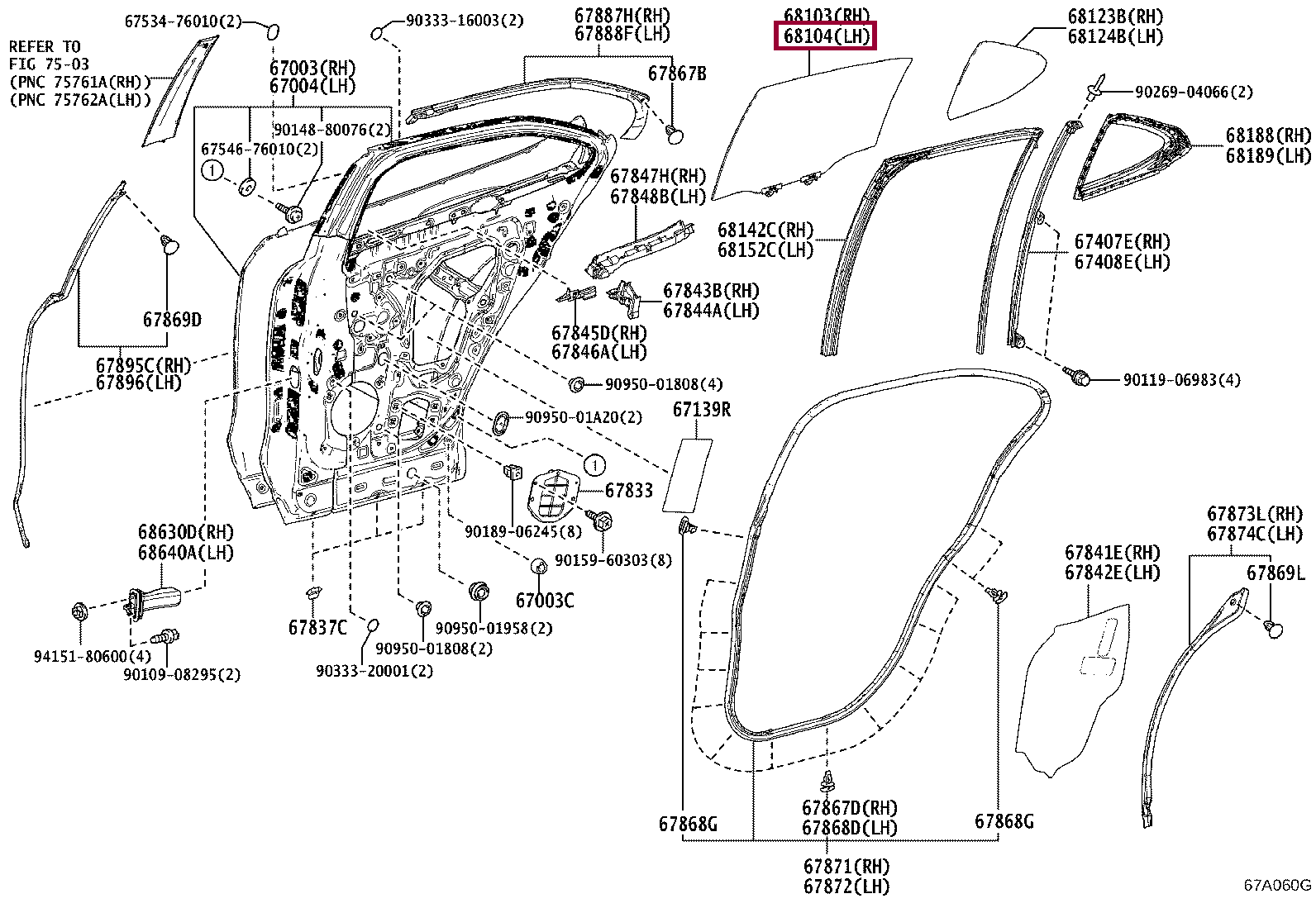 68104-76041, GLASS SUB-ASSY, REAR DOOR, LH