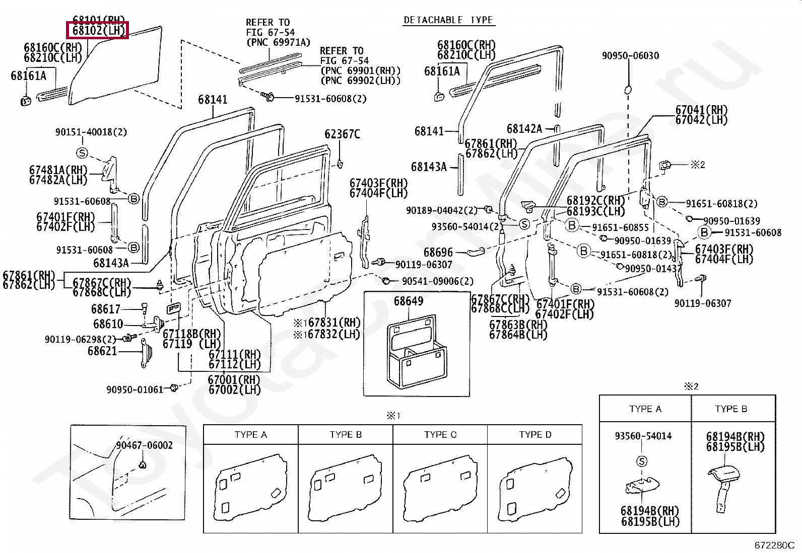 68112-60160, GLASS SUB-ASSY, FRONT DOOR, LH