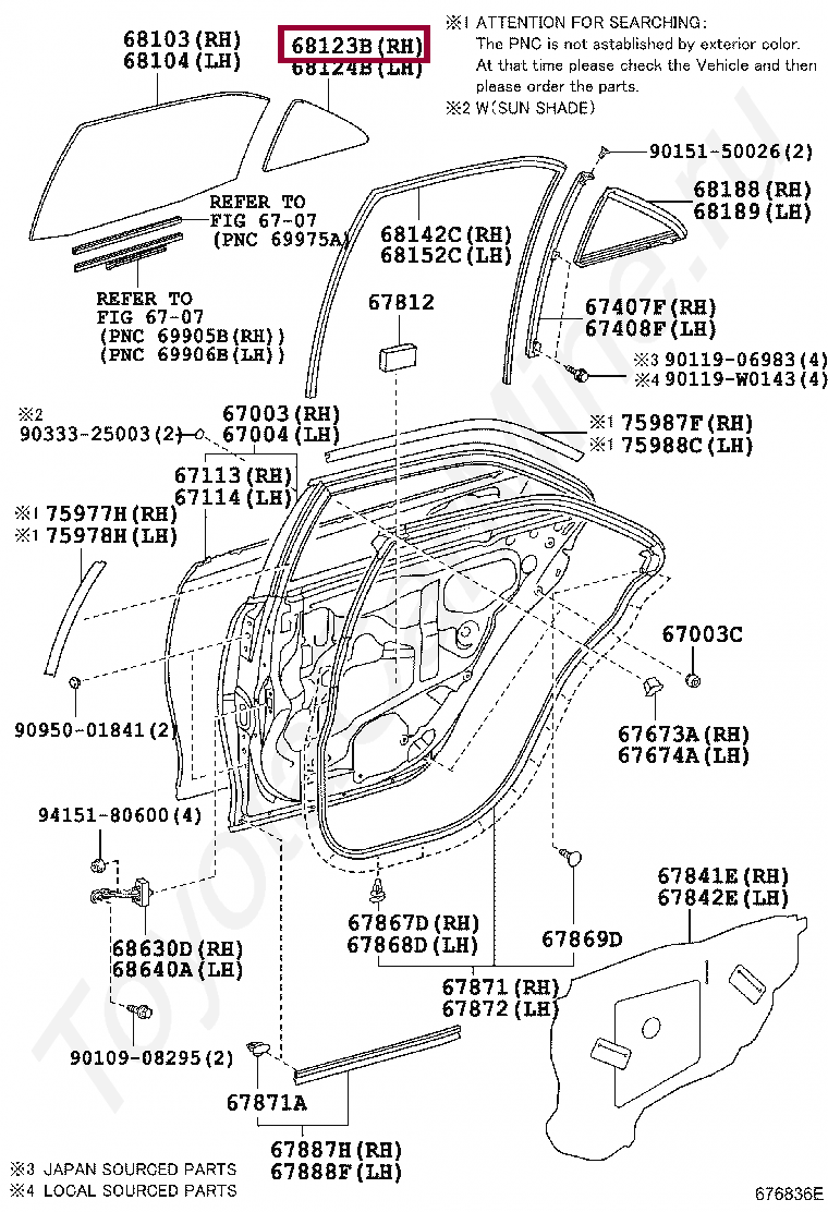 68123-33080, GLASS, REAR DOOR QUARTER WINDOW, RH