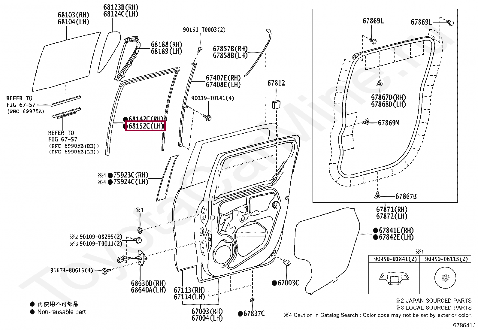 68152-0K080, RUN, REAR DOOR GLASS, LH