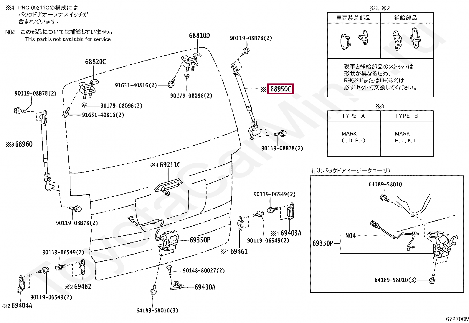 68960-58030, STAY ASSY, BACK DOOR, LH