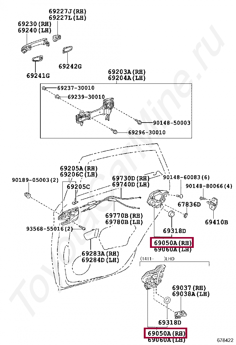 69050-48060, LOCK ASSY, REAR DOOR W/MOTOR, RH