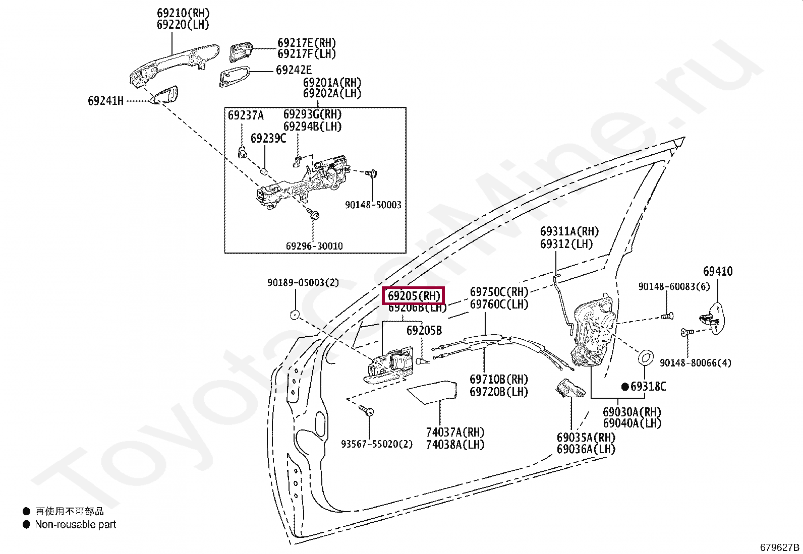 69205-33140-C0, HANDLE SUB-ASSY, REAR DOOR INSIDE, RH