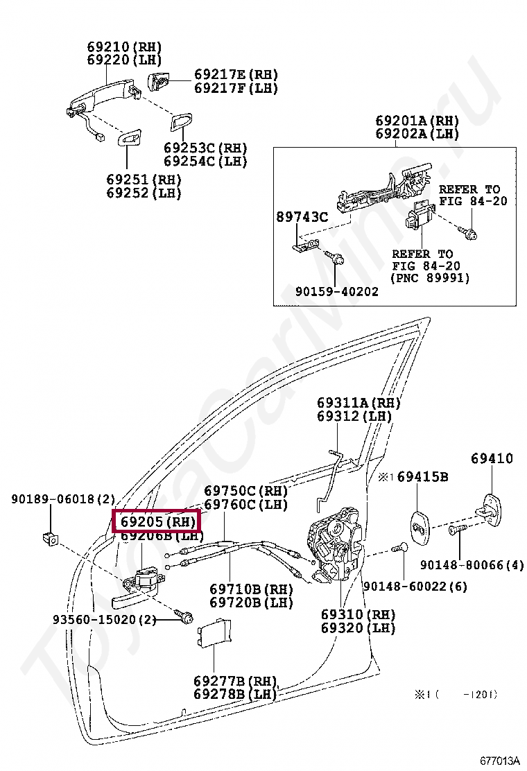 69205-60150, HANDLE SUB-ASSY, REAR DOOR INSIDE, RH