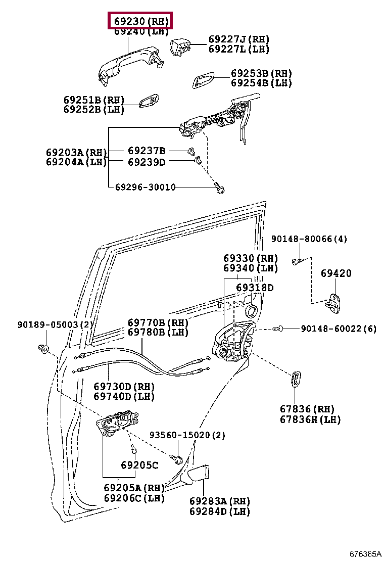 69210-60170-B1, HANDLE ASSY, REAR DOOR OUTSIDE, LH