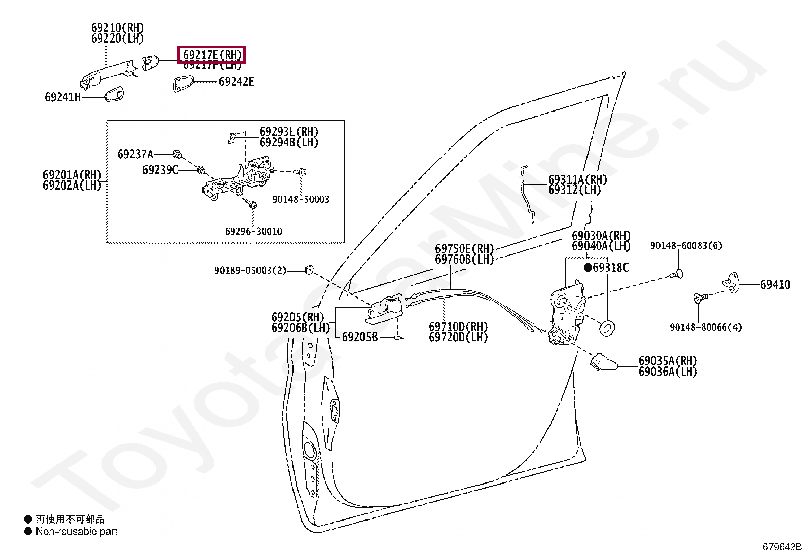 69217-52070, COVER, FRONT DOOR OUTSIDE HANDLE, RH