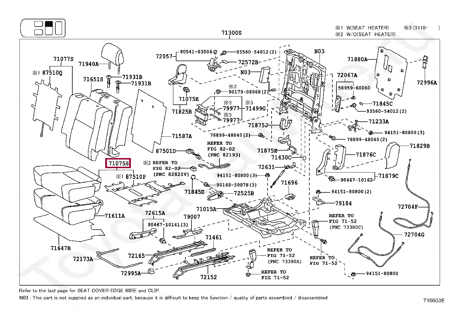 71075-60G33-C2, COVER, REAR SEAT CUSHION, RH (FOR SEPARATE TYPE)