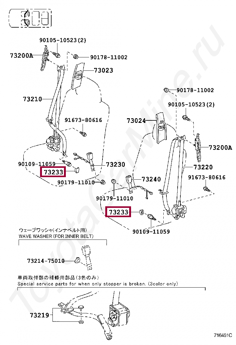 73233-35010-C1, COVER, LAP BELT OUTER ANCHOR, REAR NO.1 SEAT
