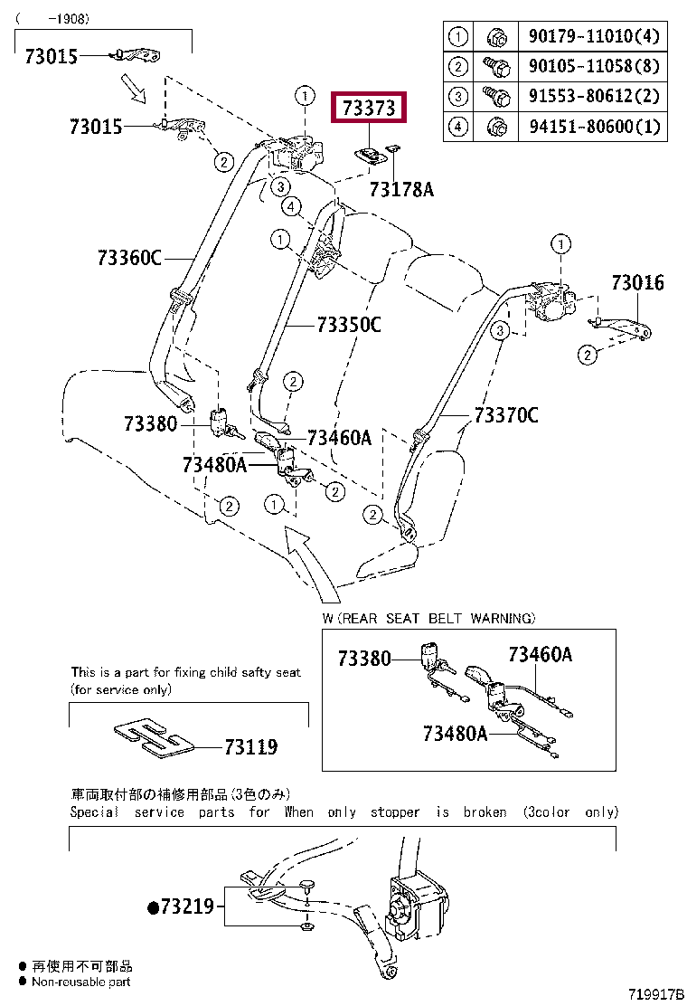 73373-48080-A0, COVER, REAR SEAT SHOULDER BELT