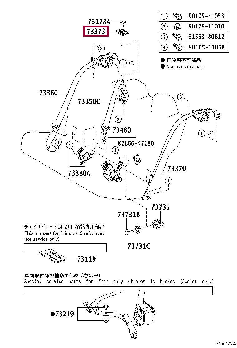 73373-48080-C0, COVER, REAR SEAT SHOULDER BELT