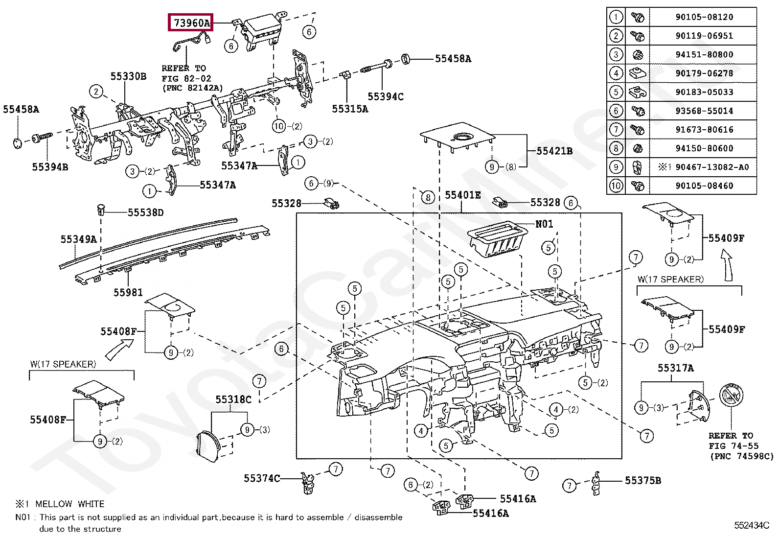 73960-60350, AIR BAG ASSY, INSTRUMENT PANEL PASSENGER W/O DOOR