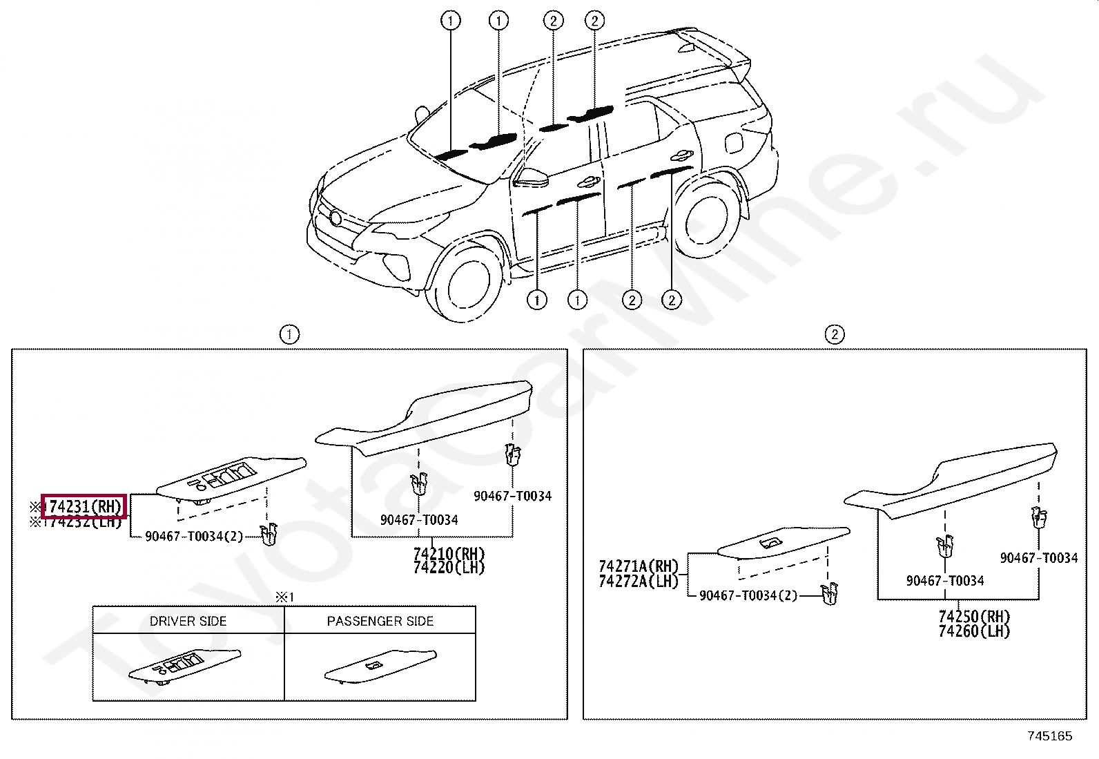74231-0K600, PANEL, FRONT ARMREST BASE, UPPER RH