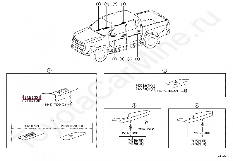 74231-0KB60, PANEL, FRONT ARMREST BASE, UPPER RH