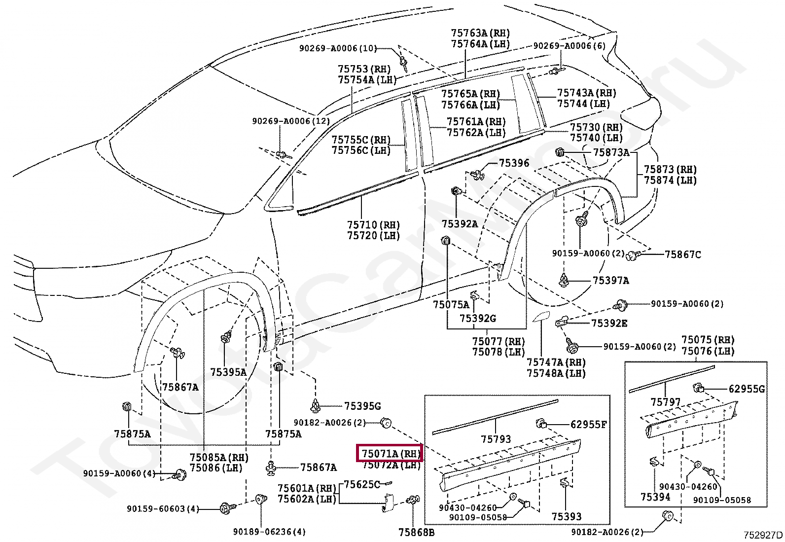 75071-0E080-C0, Молдинг двери передний правый