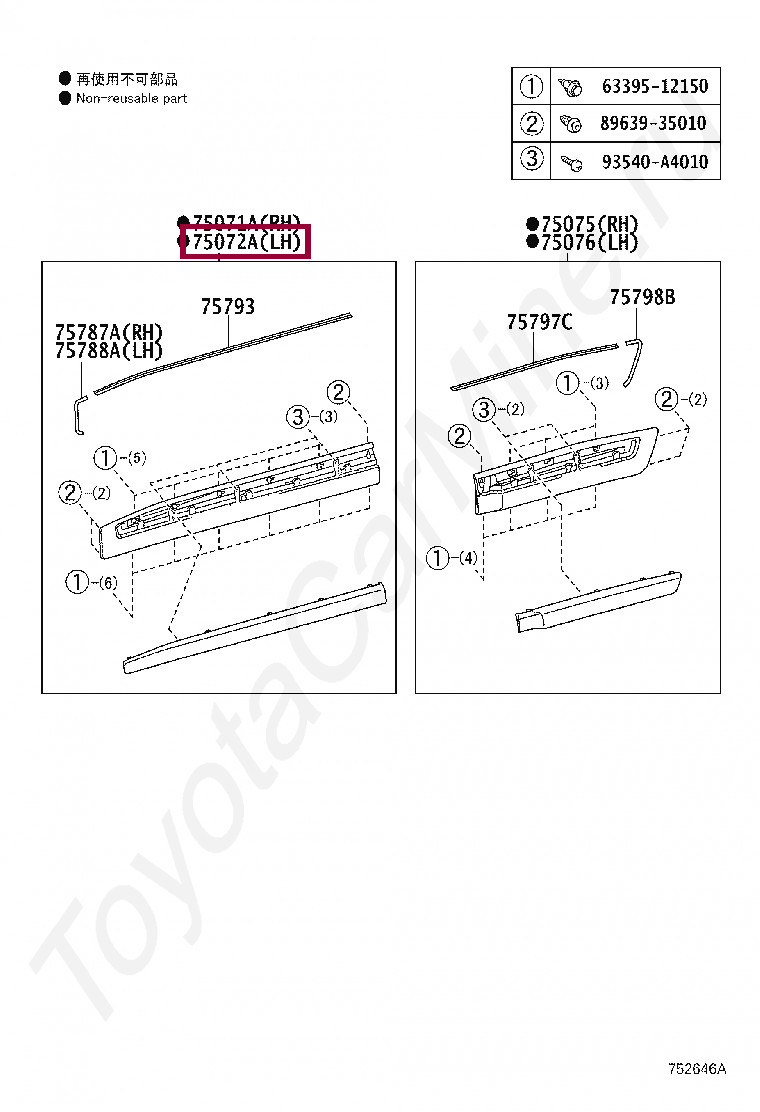75072-60120-A1, MOULDING SUB-ASSY, FRONT DOOR, OUTSIDE LH
