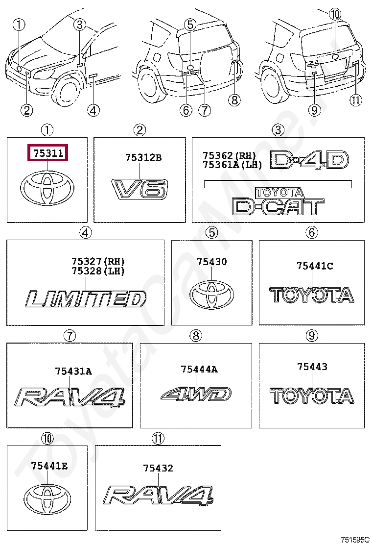 75311-42050, эмблема решётки радиатора rav4