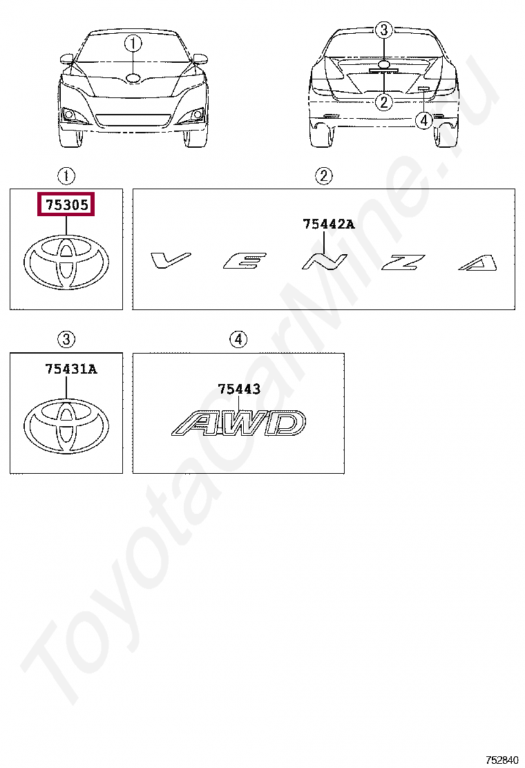 75331-0T020, EMBLEM, HOOD