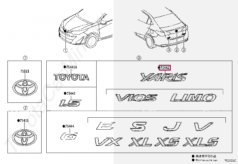 75442-0D410, PLATE, LUGGAGE COMPARTMENT DOOR NAME, NO.2