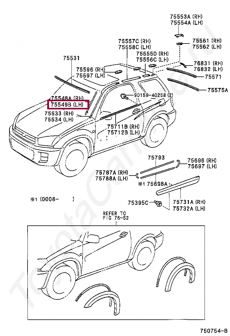 75549-42011, FASTENER, WINDSHIELD OUTSIDE MOULDING, NO.2