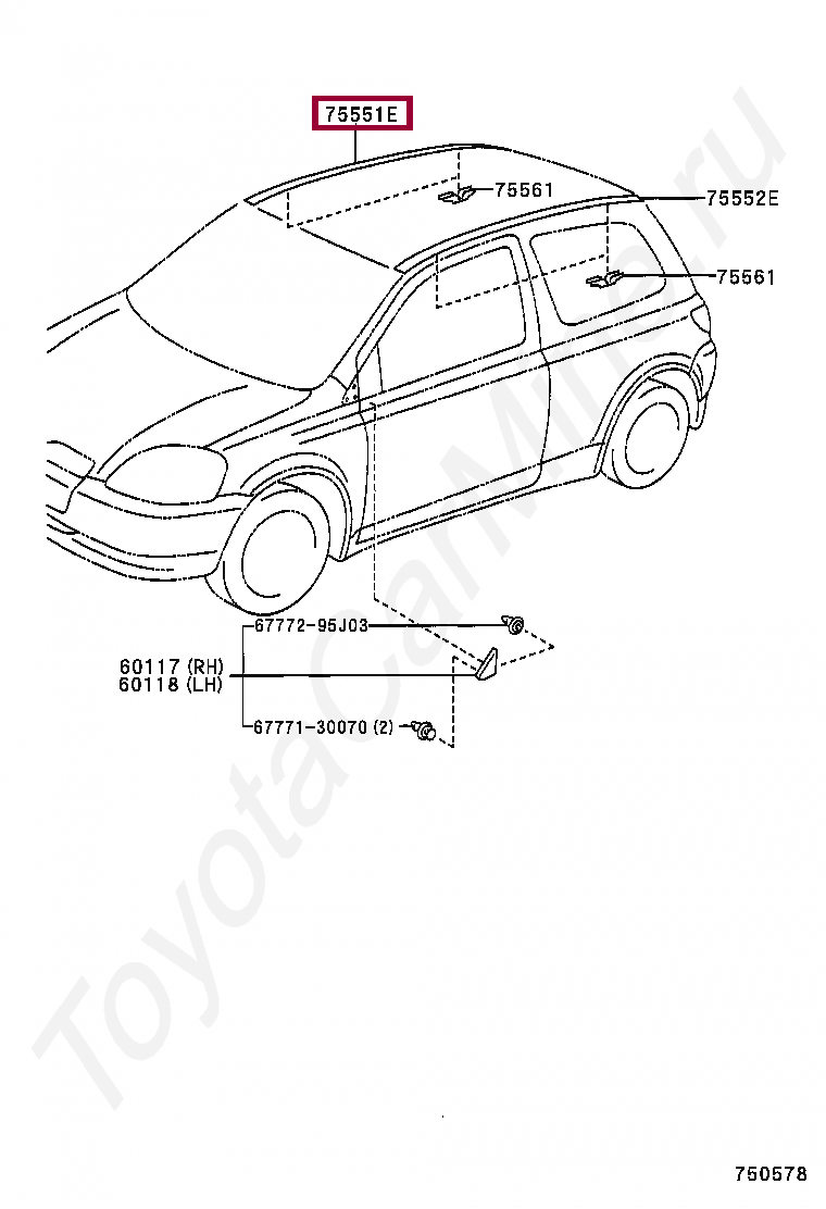 75551-52010, MOULDING, ROOF DRIP SIDE FINISH, LH