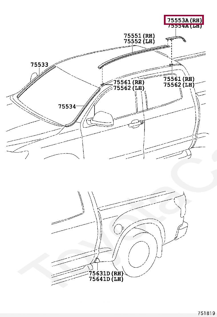 75553-0C020, MOULDING, ROOF DRIP SIDE FINISH, REAR RH