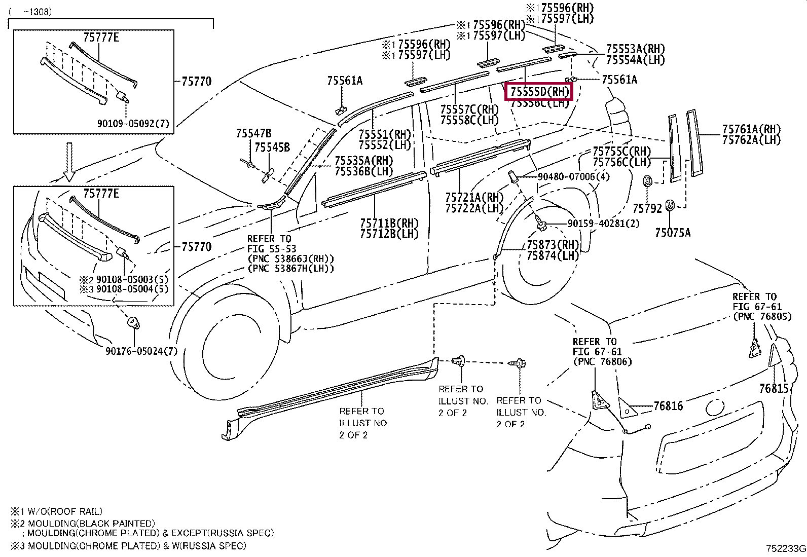 75555-60030, MOULDING, ROOF DRIP SIDE FINISH, CENTER LH