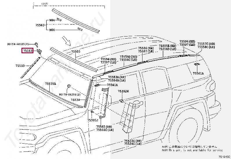75563-35010, RETAINER, ROOF DRIP SIDE FINISH MOULDING, NO.1
