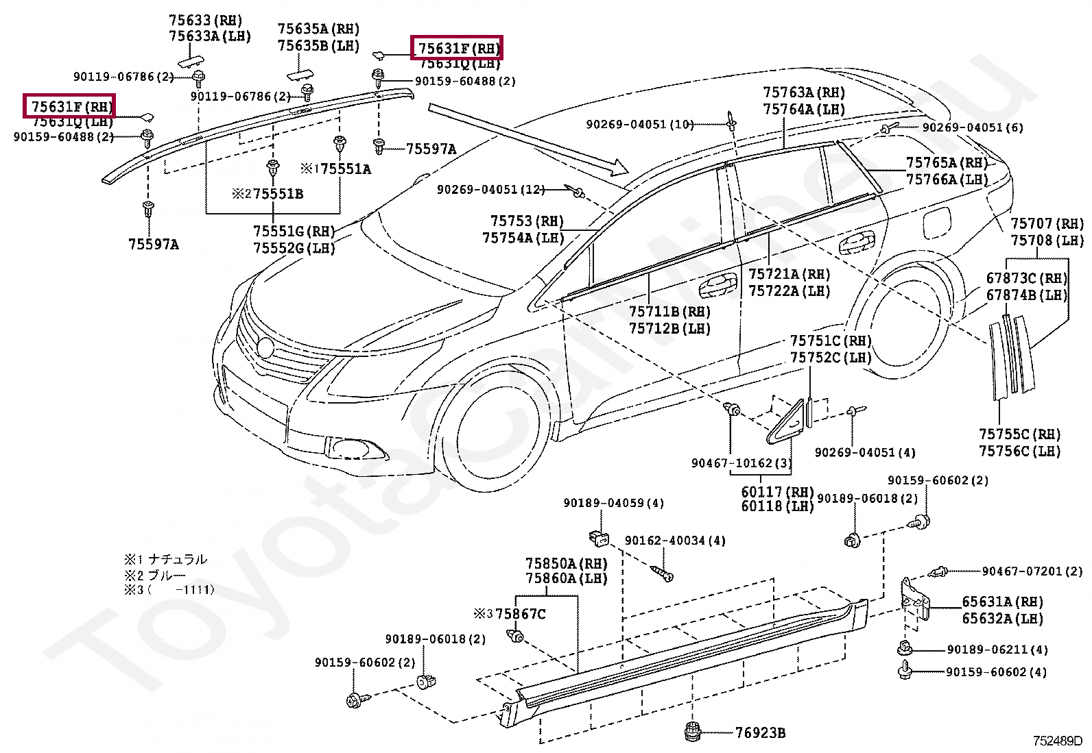 75631-05060-B0, LID, ROOF SIDE GARNISH, NO.1 LH