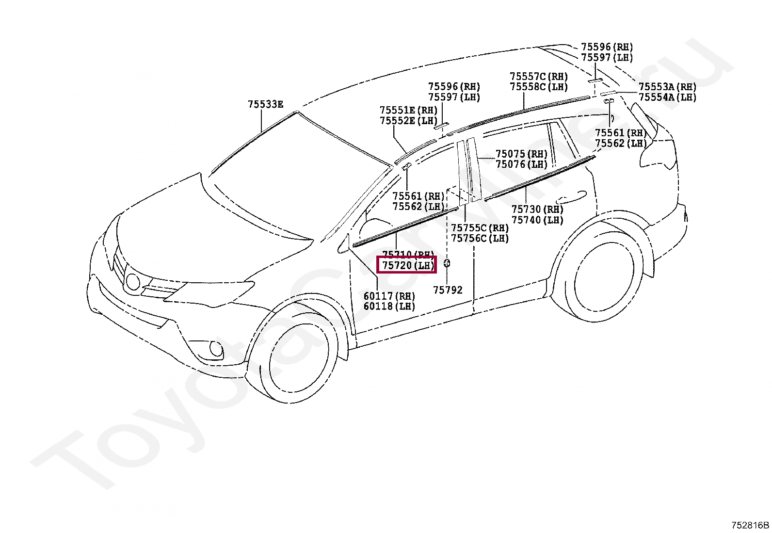 75720-0R030, MOULDING ASSY, FRONT DOOR BELT, LH