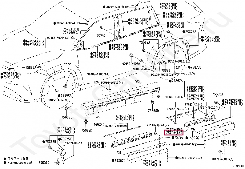 75746-0E060, MOULDING, REAR DOOR OUTSIDE, LOWER LH