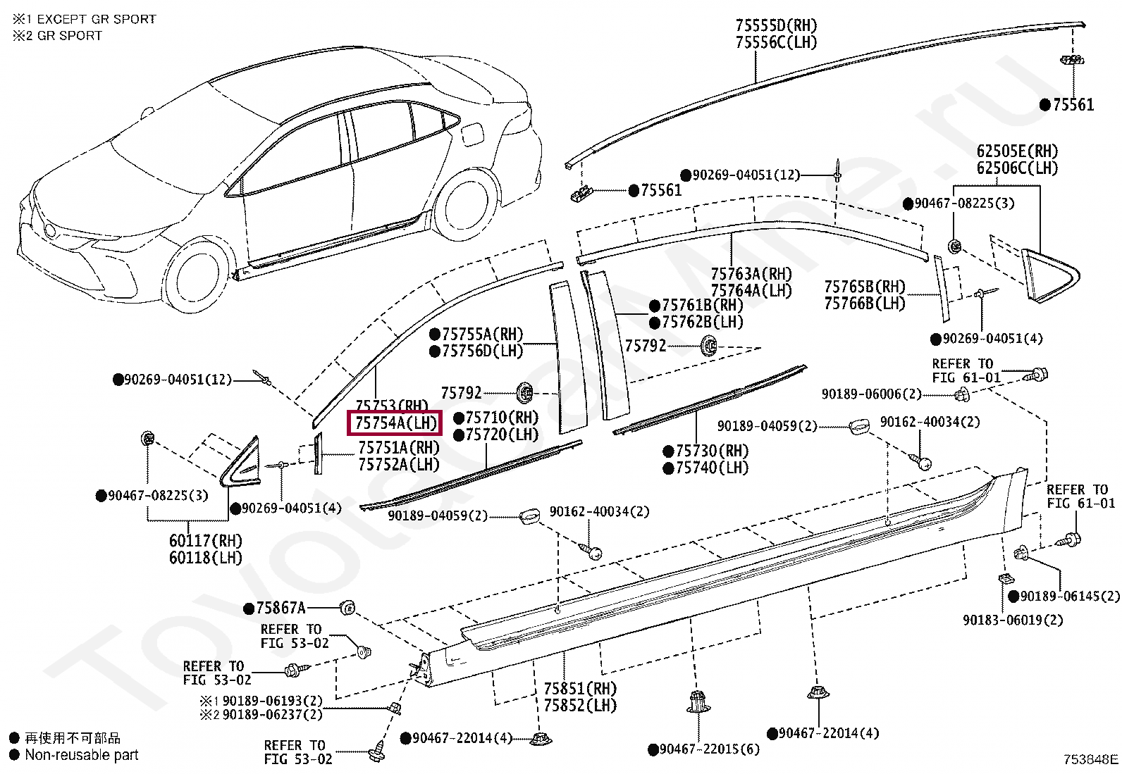 75754-02020, MOULDING, FRONT DOOR WINDOW FRAME, UPPER LH