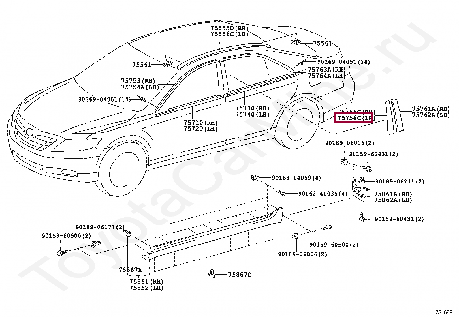 75756-33010, MOULDING, FRONT DOOR WINDOW FRAME, REAR LH