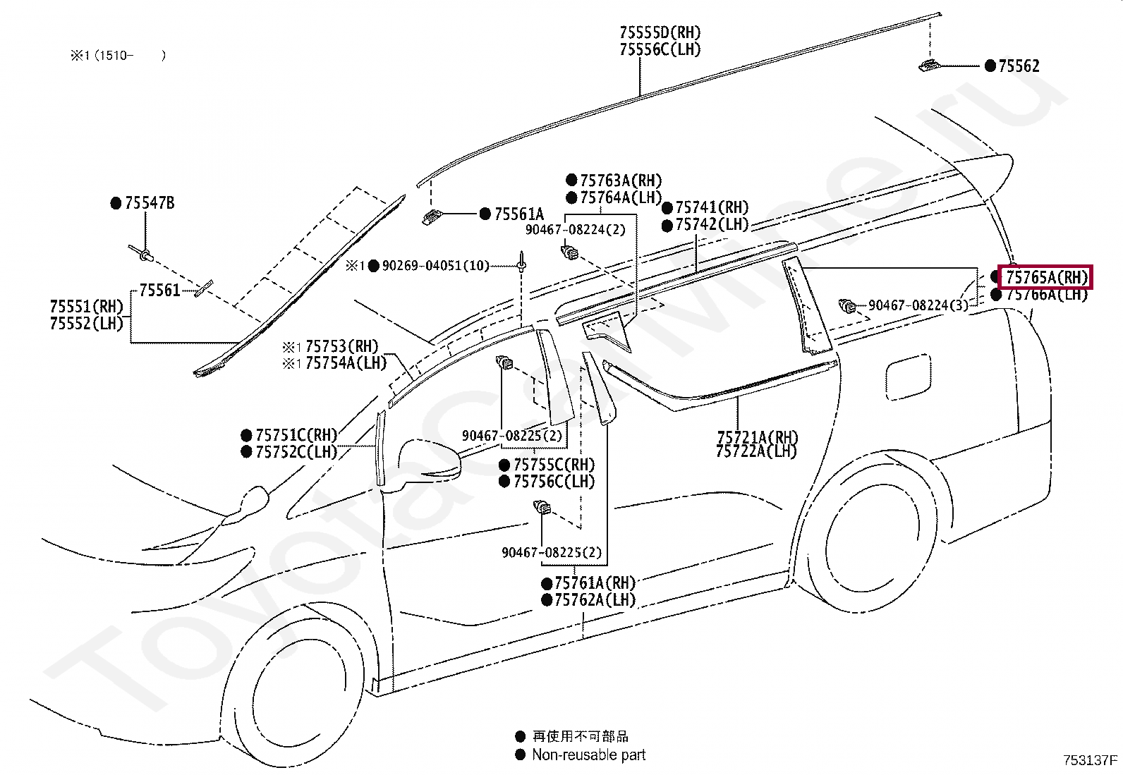 75765-58030, MOULDING, REAR DOOR WINDOW FRAME, REAR RH
