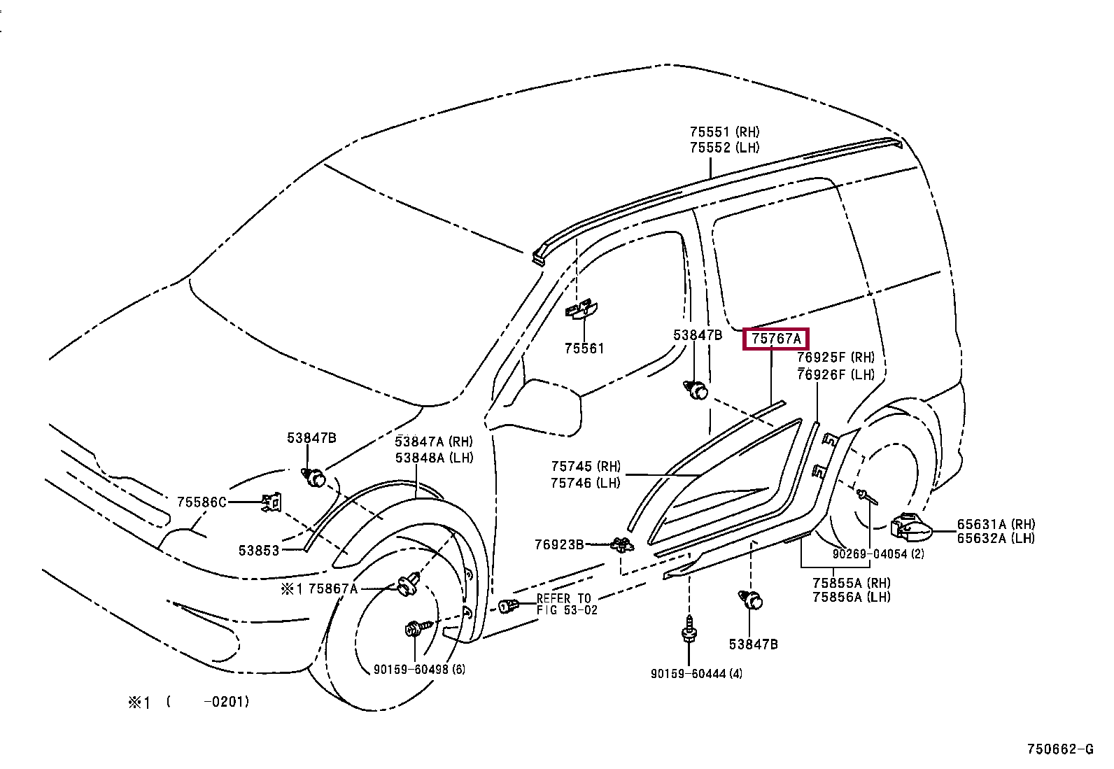 75767-52010-B0, PAD, REAR DOOR MOULDING, NO.1
