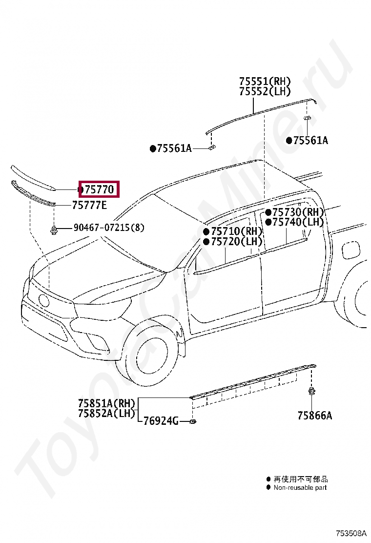 75770-YP011, MOULDING ASSY, HOOD, FRONT