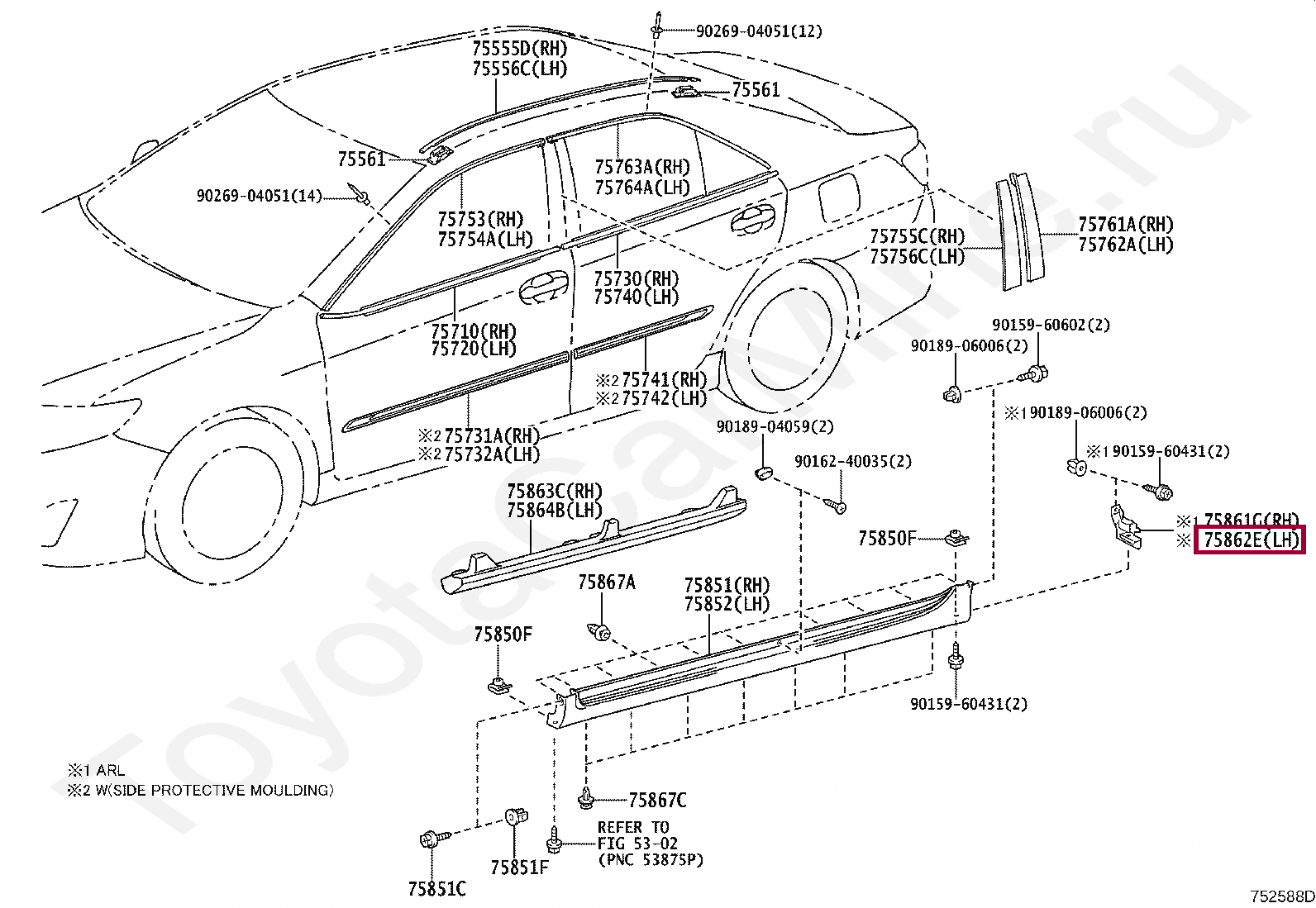 75862-06100, COVER, ROCKER PANEL MOULDING END, FRONT LH