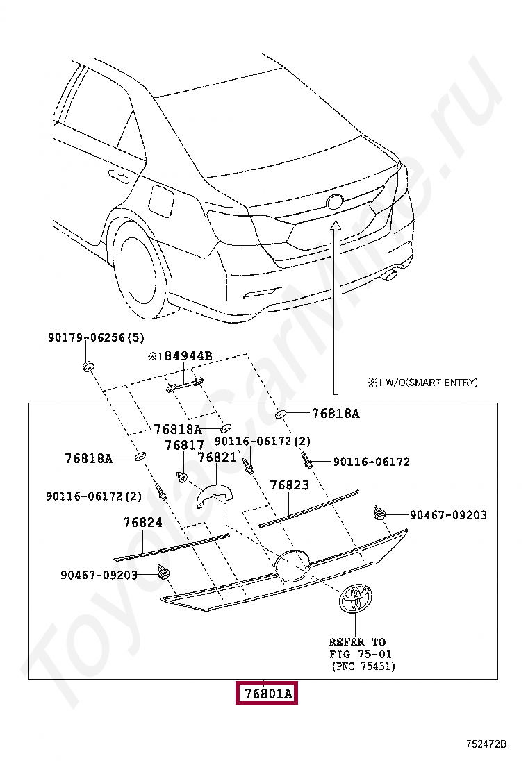76801-33350, GARNISH SUB-ASSY, LUGGAGE COMPARTMENT DOOR, OUTSIDE