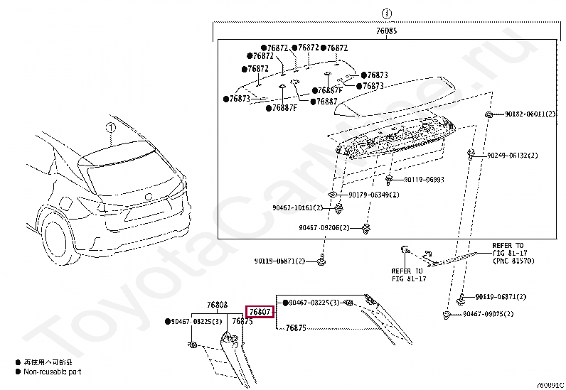 76807-48011, PROTECTOR SUB-ASSY, REAR SPOILER, SIDE RH