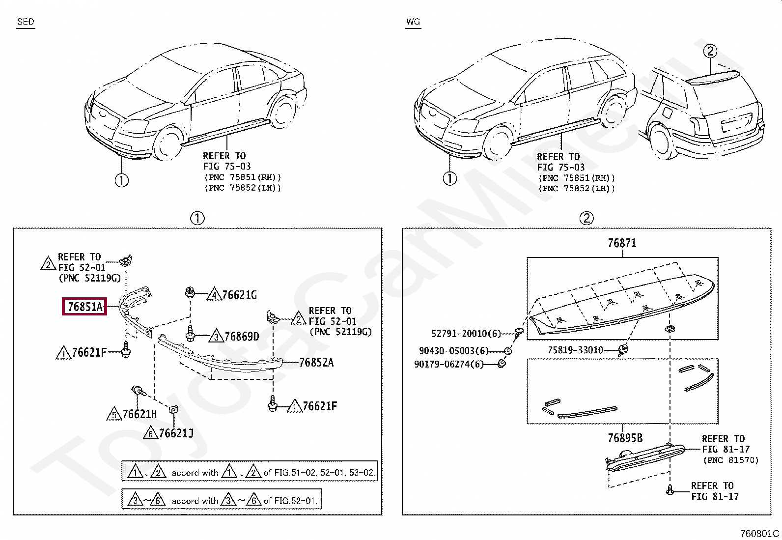 76851-05020, Спойлер правый переднего бампера avensis