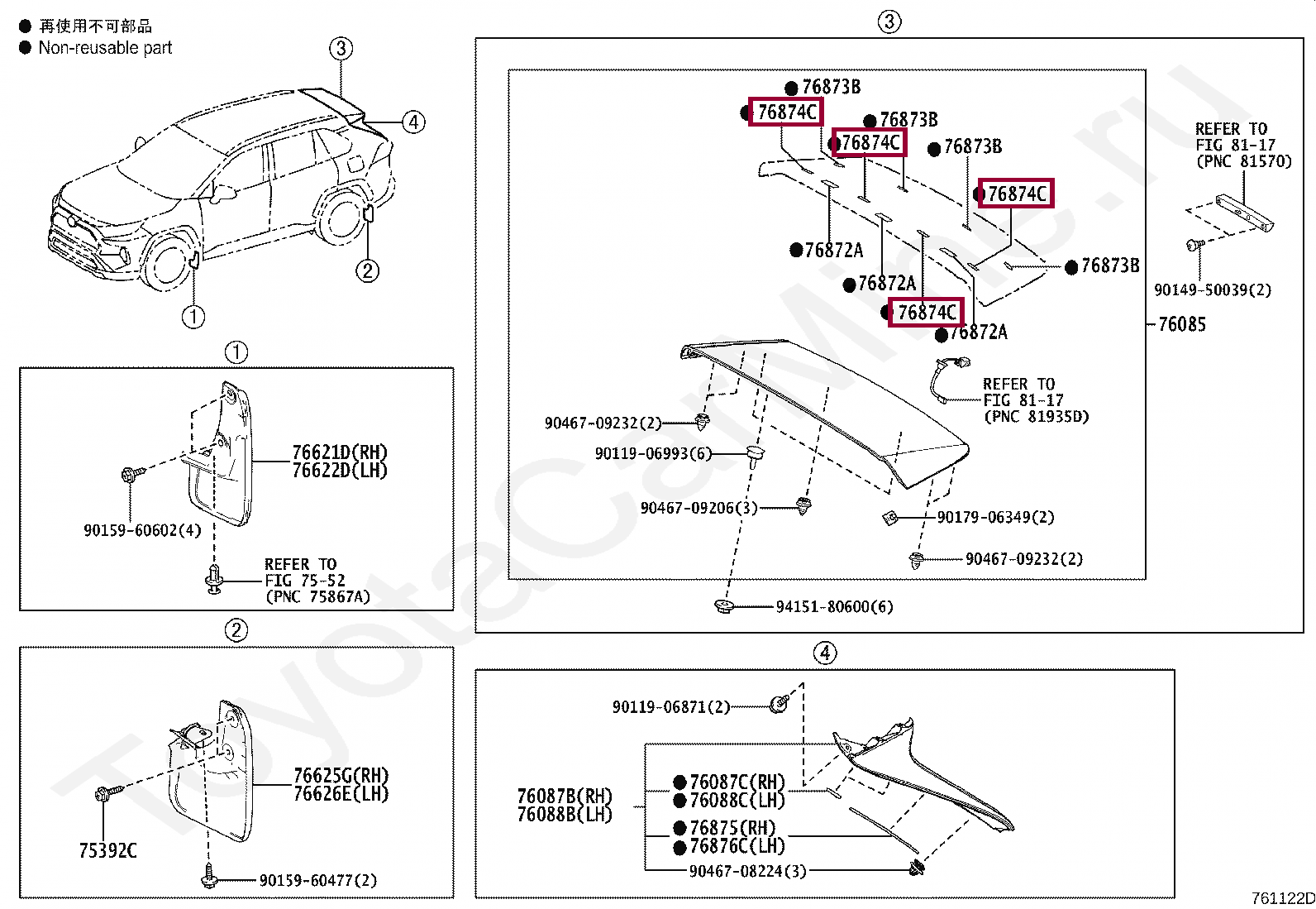 76874-42020, PROTECTOR, REAR SPOILER, NO.1