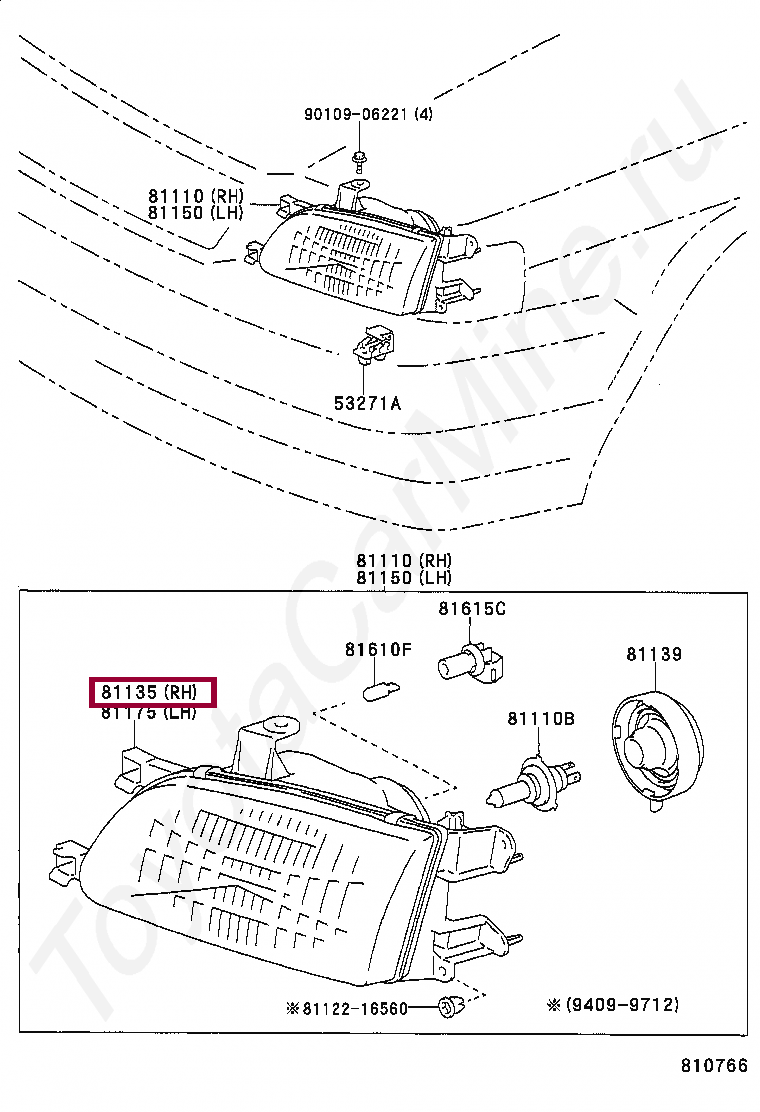 81130-16750, UNIT ASSY, HEADLAMP, RH
