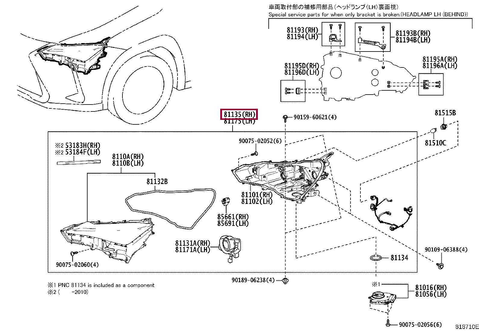 81145-76291, UNIT ASSY, HEADLAMP, RH
