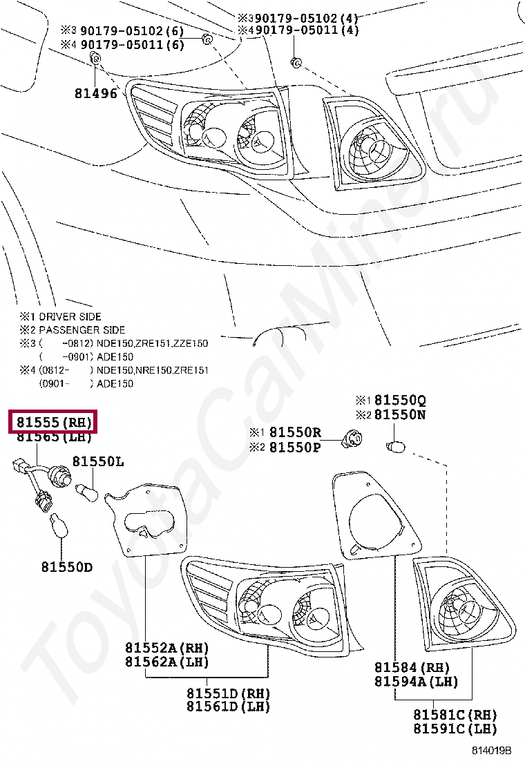 81555-12A30, SOCKET & WIRE SUB-ASSY, REAR COMBINATION LAMP, LH