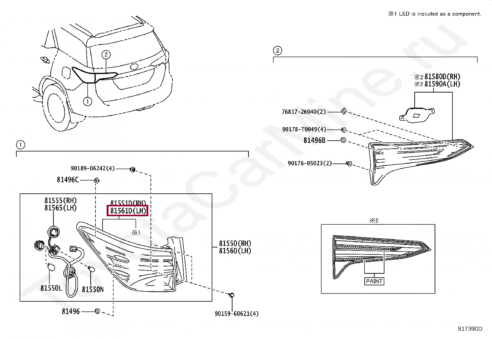 81561-0K351, LENS & BODY, REAR COMBINATION LAMP, LH